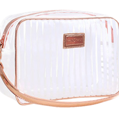This Beauty Bag comes in three separate colours, all transparent with either pink, white, or black stripes with gorgeous rose gold detailing and a convenient strap. Why not take this opportunity to get one of each?